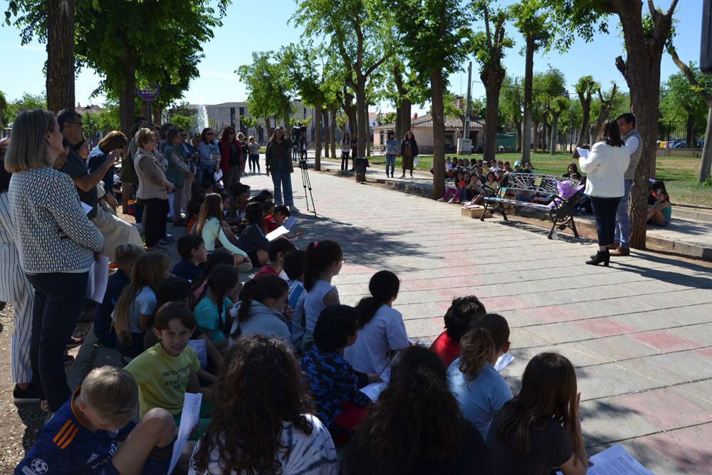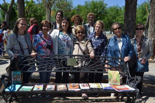 El día 20 de abril, ya cercano al Día del Libro, celebramos la inauguración del segundo Banco Literario, esta vez dedicado a Nieves Fernández, escritora y poeta nacida en Almagro, en el Parque Paseo Viejo de la Florida, como homenaje a su trayectoria literaria y por haber sido premiada con numerosas distinciones. Fue un acto muy emotivo en el que participaron los Colegios e Institutos de la localidad en una mañana de primavera y a la sombra de los árboles del paseo del Parque, que tanto recordaban a la niñez de su autora y disfrutamos de la lectura de sus poemas.