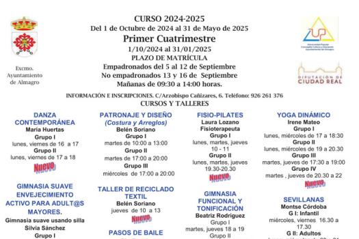 Plazo y Horario: Del 5 al 16 de Septiembre en horario de 9:00 a 14 El participante presentará su solicitud en la oficina de la Universidad Popular o podrá