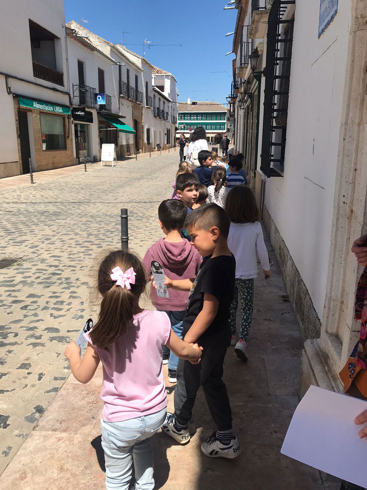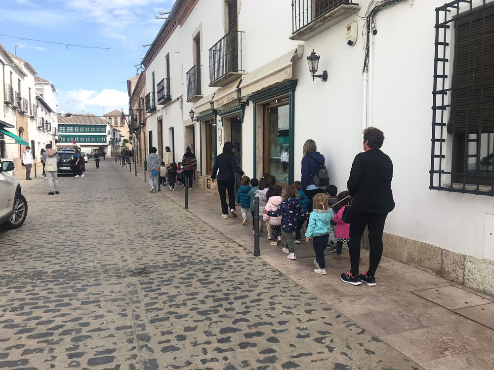 A los mayores les explicábamos quien es Manolita Espinosa y por qué la Biblioteca lleva su nombre, aunque muchos ya la conocían. Les informábamos de las distintas ubicaciones que ha tenido la Biblioteca hasta la actual. Y como los últimos 200 libros los trasladaron los niños y niñas de Almagro. Para ello formamos una cadena humana desde el Palacio de Medrano donde estuvo la Biblioteca anteriormente hasta la actual en Mayor de Carnicerías. Y cómo los libros iban pasando de mano en mano hasta llegar al nuevo centro, participando los colegios de la localidad, Institutos, Club de Lectura, concejales del Ayuntamiento, Alcalde y otras autoridades. Se quedaban sorprendidos que fueran los niños y niñas los que participaran en el traslado.