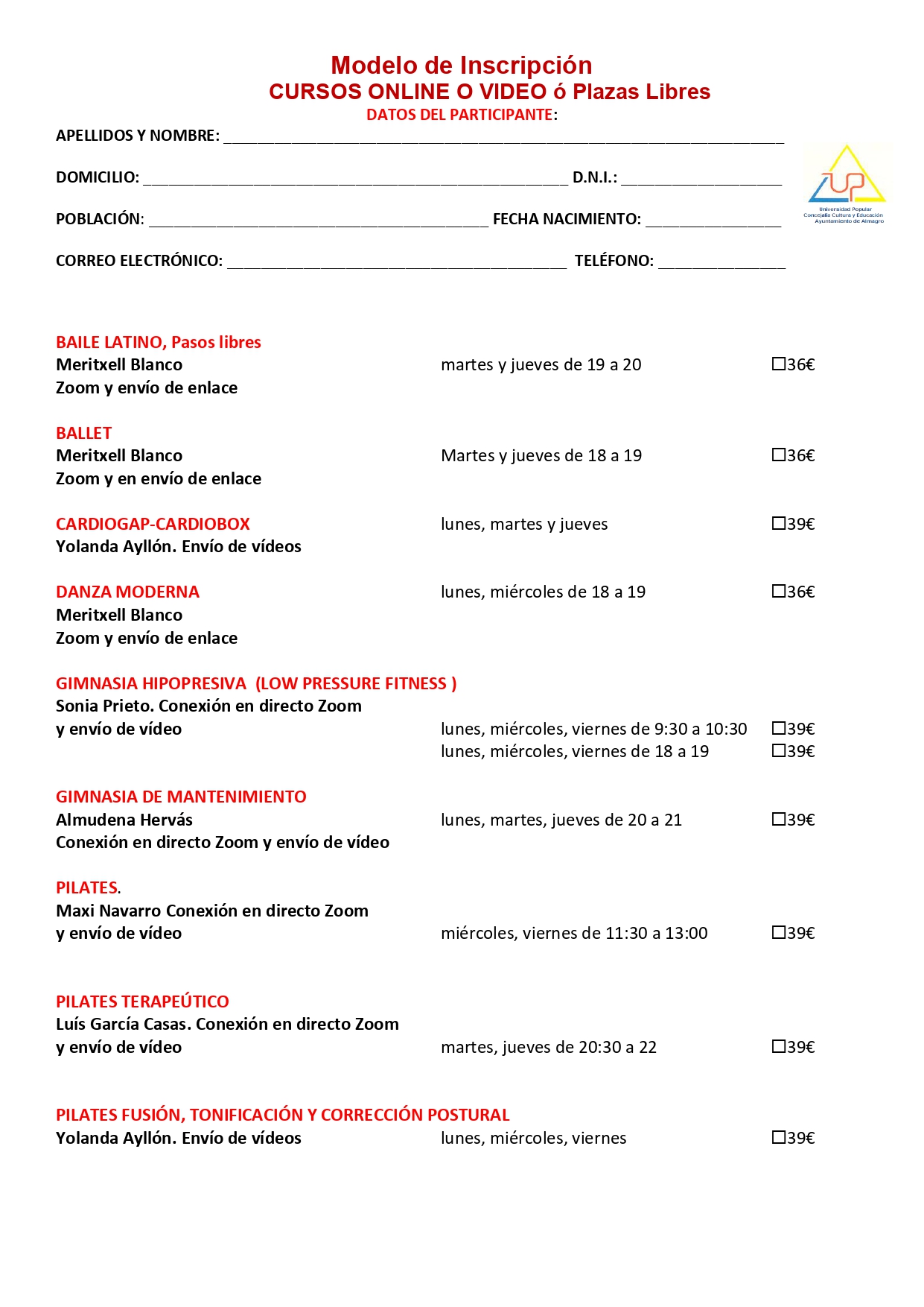 Modelo de Inscripción primer cuatrimestre 2020-21