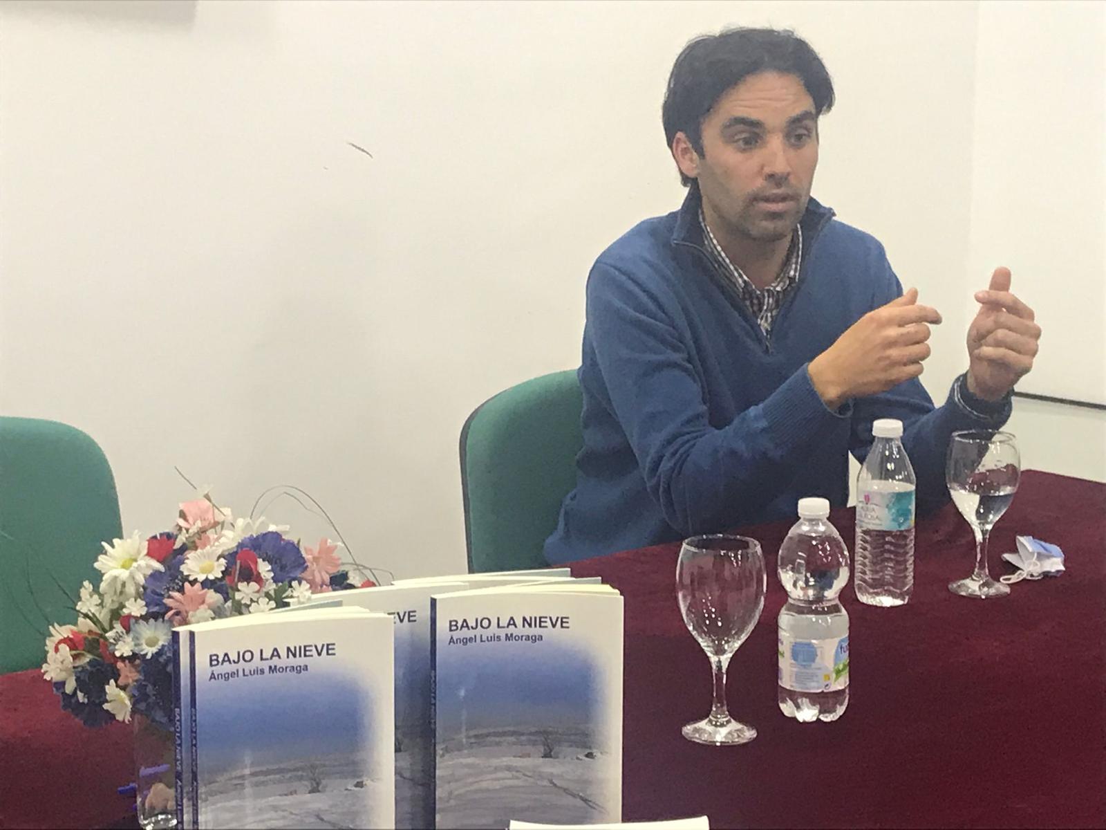 Y ya en marzo, recibimos en la Biblioteca a Angel Luis Moraga, que siempre nos ha presentado sus nuevos libros. Esta vez seria con su última obra “Bajo la nieve”; conjunto de relatos con la mujer como protagonista, que el autor ha rescatado veinte años después de su creación. El libro está compuesto por historias ficticias y bastantes duras que Angel Luis fue detallando y que nos hizo participes de sus emociones compartiendo comentarios y analizando su contexto.