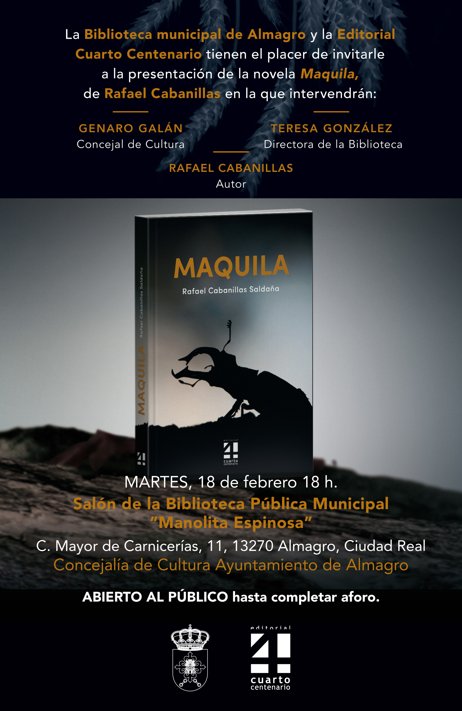 PRESENTACION DEL LIBRO - MAQUILLA- de Rafael Cabanillas 18 de febrero de 2025 a las 18:00 horas en la biblioteca municipal