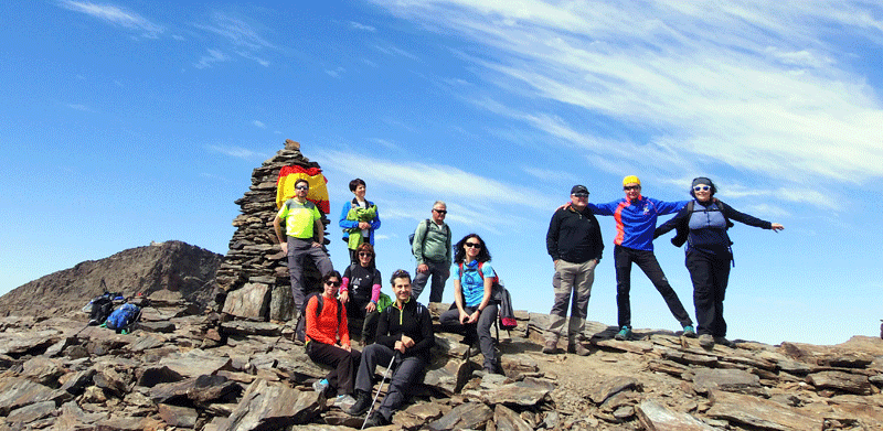 Un grupo de senderistas almagreños alcanzan la cima del pico del Veleta