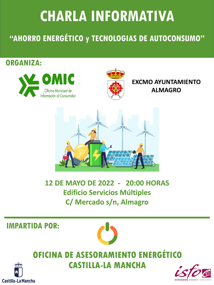 Ante la preocupación de las subidas en las facturas de la energía que repercuten en nuestra economía familiar, desde la oficina de asesoramiento energético de Castilla la Mancha nos ofrecen unas charlas para indicarnos algunas opciones a valorar como los medios alternativos de las energías renovables y las ayudas existentes.