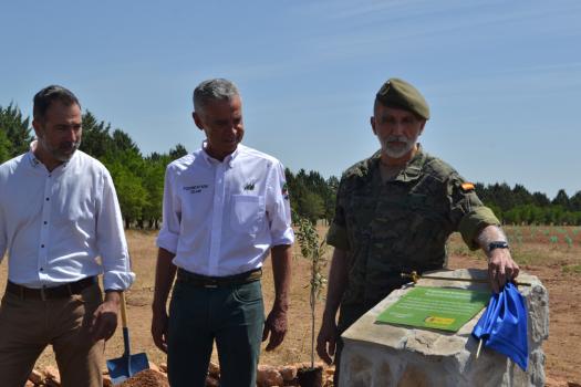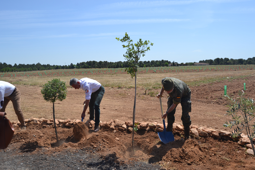 La Fundación Iberdrola ha puesto en marcha varios proyectos de reforestación en campos de maniobras militares. Hoy, ha finalizado la plantación de pinos, acebuches y encinas de la base Coronel Sánchez Bilbao.