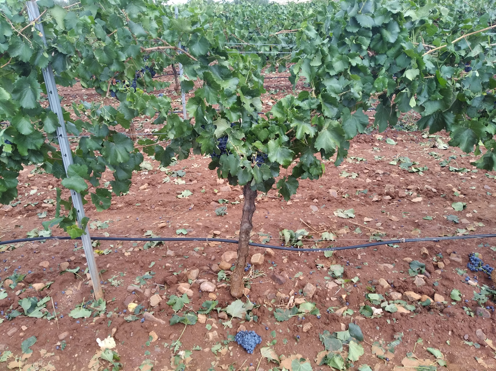 La tormenta tuvo lugar sobre las 20h de la tarde del 31 de agosto y sobre las 00:30 de la madrugada del 1 de septiembre. Fue un episodio tormentoso con fuerte aparato eléctrico y truenos, que propicio la caída de fuertes lluvias con granizo en algunas zonas del término. Ha afectado de manera considerable al noroeste del término municipal, provocando cuantiosos daños en los cultivos y frutos de olivar, viña, almendros y pistachos. La superficie aproximada afectada puede estar entre las 2.778 hectáreas. Los cultivos leñosos que en estos momentos se encontraban próximos a la recolección de los frutos -viña, almendros, pistachos en septiembre y olivar en diciembre- son los más afectados.