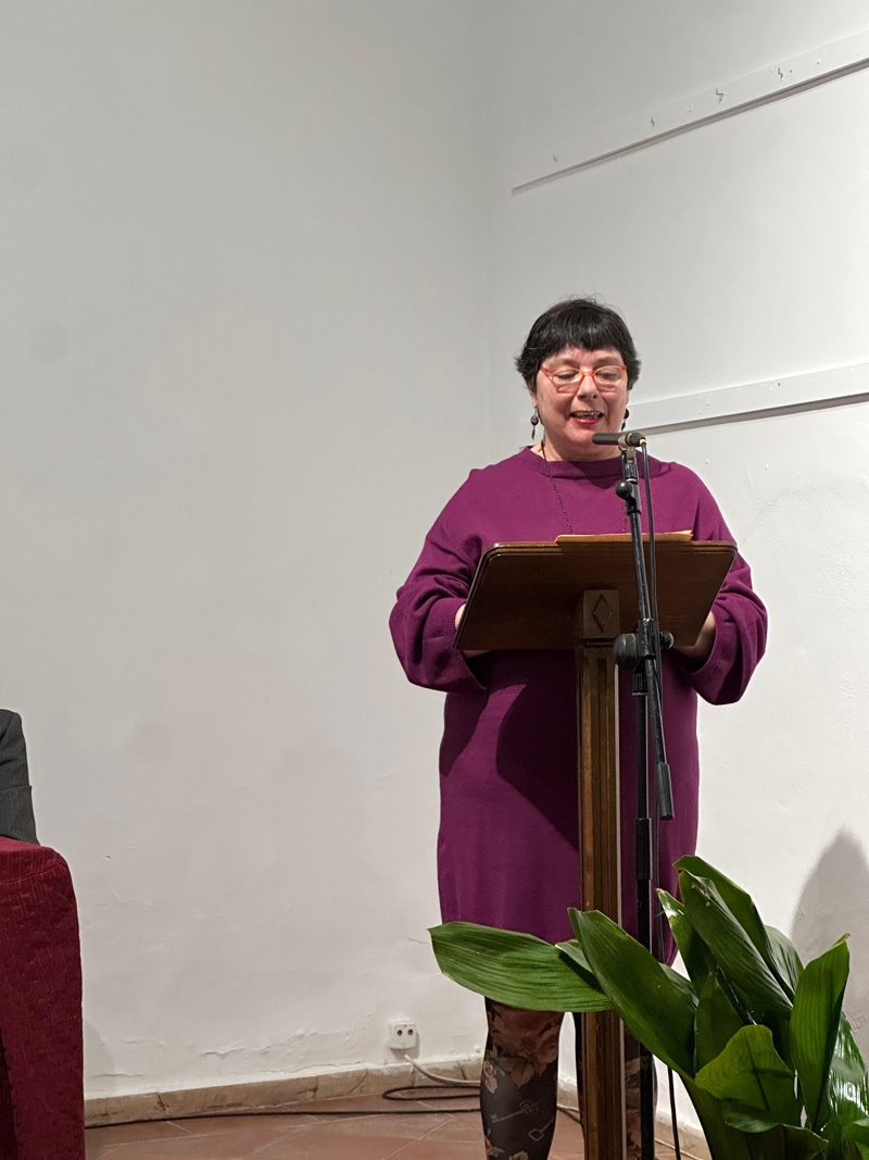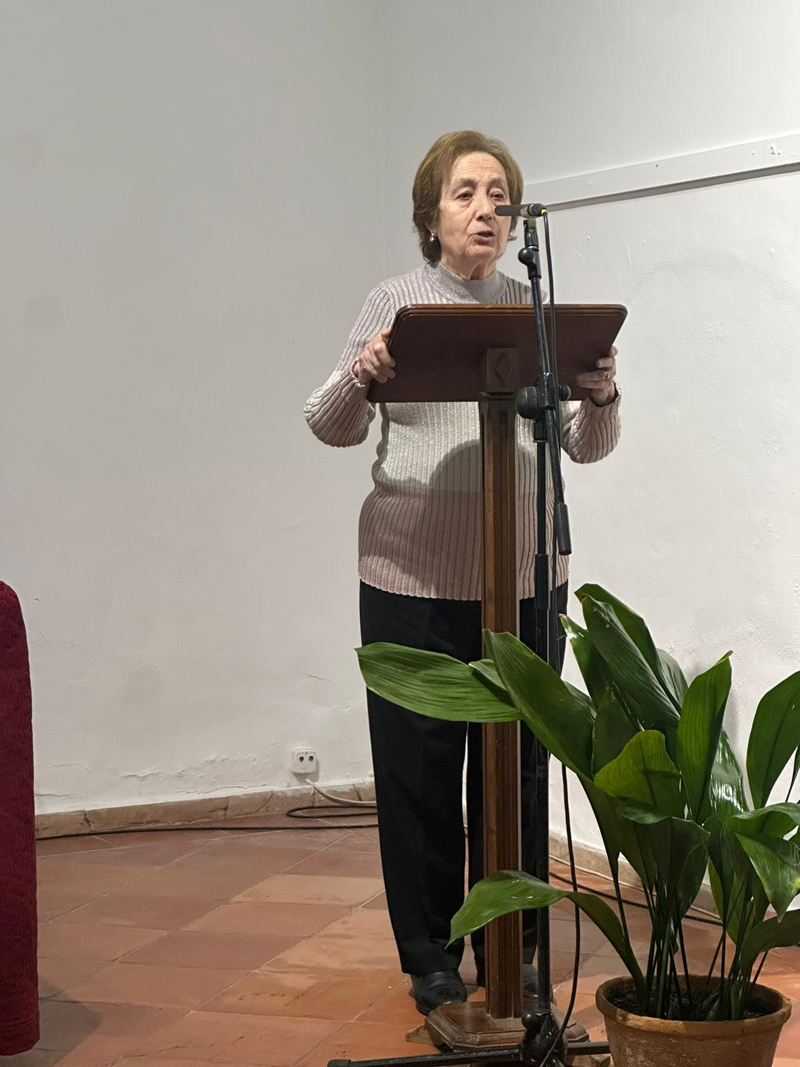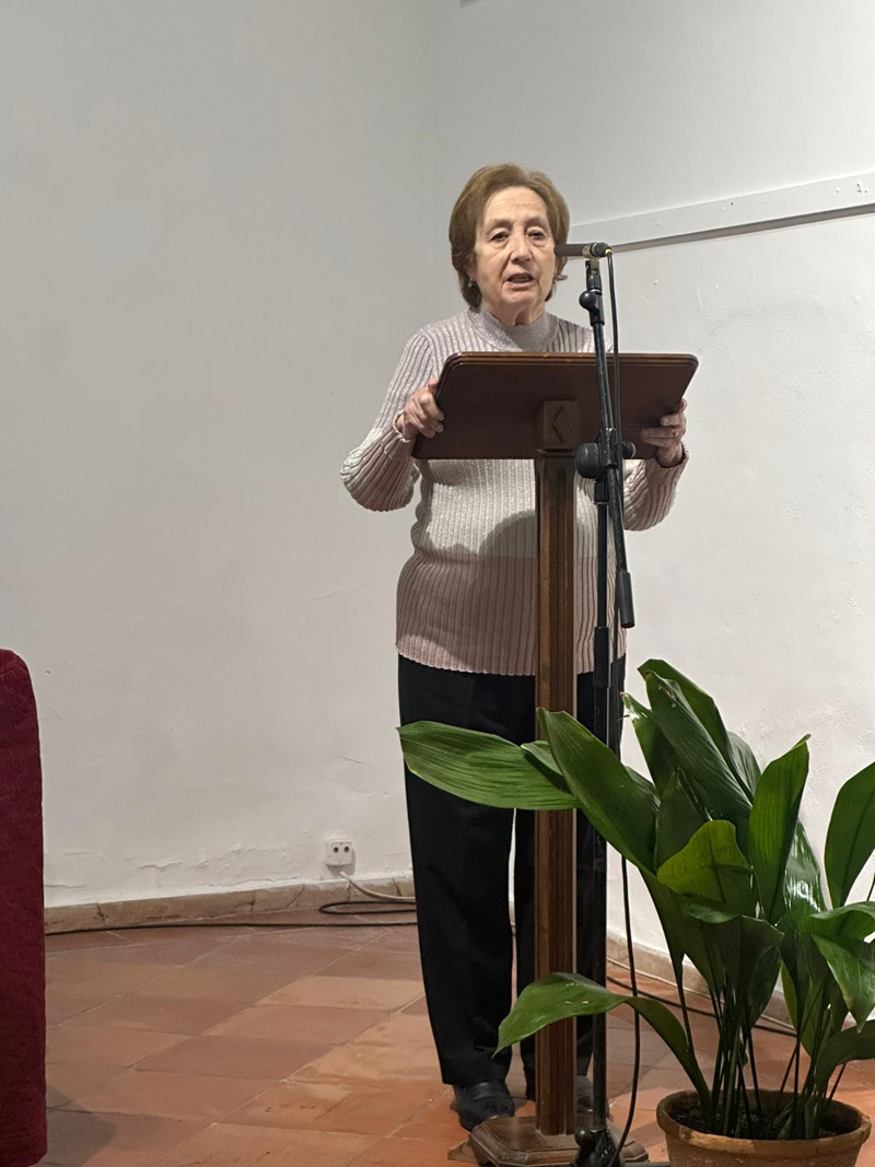 El acto continuó con el homenaje a Pepa Delmas. En representación de las asociaciones de mujeres de la localidad, Mercedes Cruz y Nieves Martínez Carrión tuvieron palabras de reconocimiento a la trayectoria y contribución al liderazgo femenino en la localidad. Mercedes Cruz destacó que hablar de Pepa es fácil porque es sencilla, inteligente y cercana. Recordó que, en un momento en que las mujeres apenas tenían representación en instituciones públicas, Almagro tuvo la fortuna de contar con una alcaldesa que desempeñó su cargo con eficacia. Además, mencionó su trayectoria como directora del colegio Diego de Almagro, donde continúa siendo recordada con respeto y cariño por alumnos y profesores. Compartió también una anécdota personal de una comida en la que la conversación derivó en los hijos y sus estudios, y un momento de silencio permitió calibrar la calidad humana de Pepa Delmas, recibiendo un fuerte aplauso de todos los presentes en el acto.