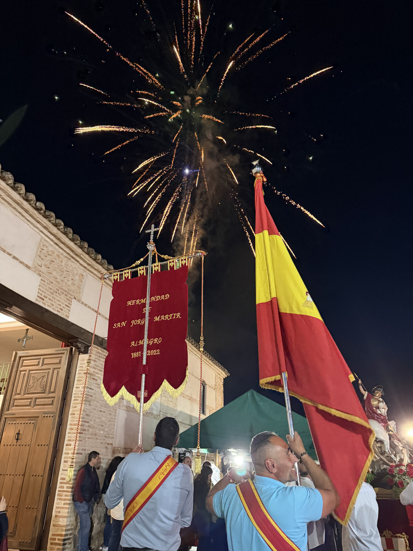Durante la jornada del sábado, la actividad se trasladó al entorno festivo con una verbena popular al mediodía, amenizada por música y acompañada por la tradicional venta de los “Dragones de San Jorge”. Por la noche, tuvo lugar la procesión de San Jorge Mártir, que recorrió las calles de su barrio acompañada por la Banda Municipal de Música de Almagro, una jornada que concluyó con un espectáculo de fuegos artificiales y, después, una velada que dio continuidad a la verbena de la tarde y que contó con la Banda Municipal de Música para ponerle ritmo a la velada.