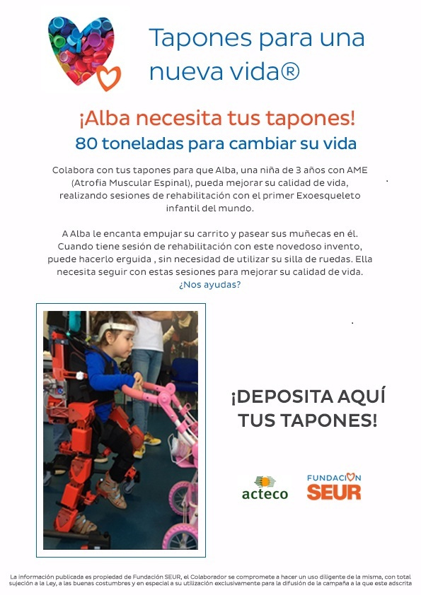 El aporte económico de la recogida de tapones se destina niños menores que necesitan un tratamiento, intervención quirúrgica, aparato ortopédico, etc.