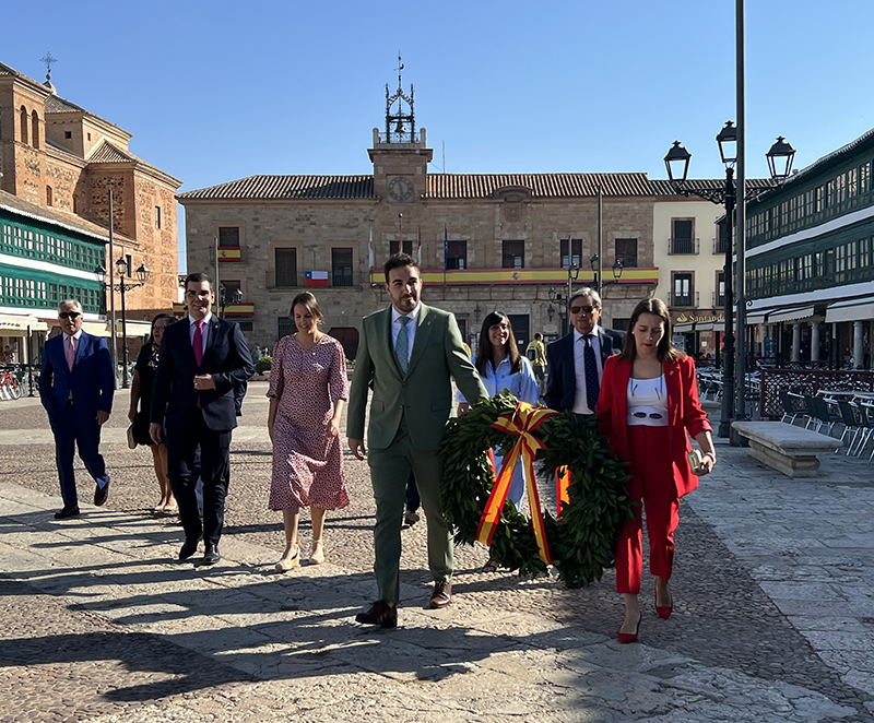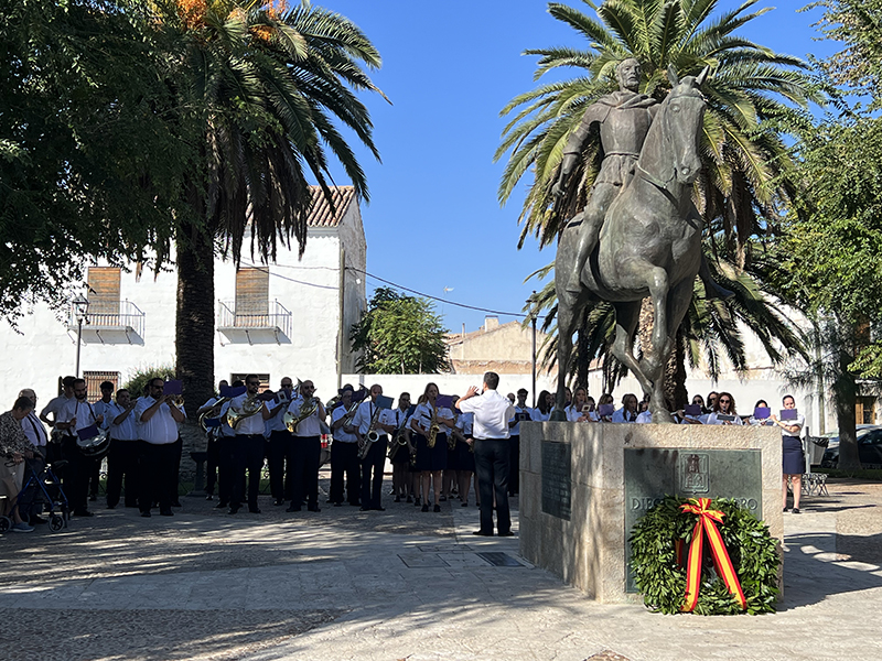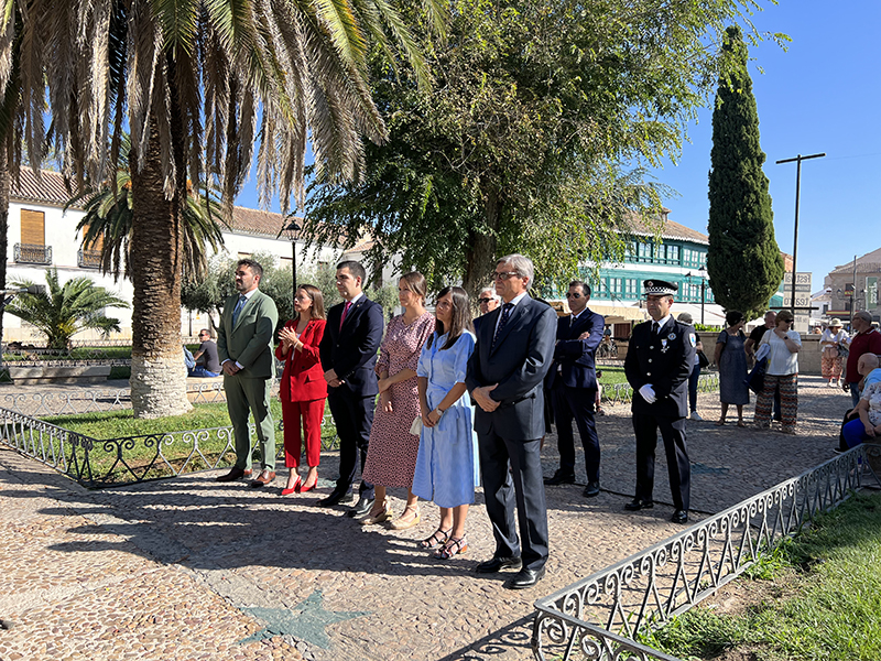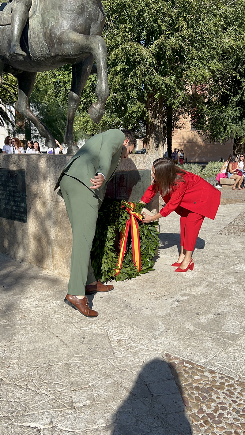 Como cada doce de octubre, Almagro ha vuelto a celebrar el Día de la Fiesta Nacional y de la Hispanidad con un acto institucional en los jardines de la Plaza Mayor, donde se encuentra la estatua de Don Diego de Almagro, símbolo de unión y relación con Latinoamérica. El alcalde del Ayuntamiento encajero, Francisco Javier Núñez, ha presidido el acto al que han asistido varios miembros de la Corporación Municipal, representantes de los Cuerpos de Seguridad del Estado y vecinos y turistas que visitan la ciudad en este día festivo. Los concejales Juan Luis Marín y Marta Rivero, han depositado una corona de laurel a los pies de la estatua del Adelantado de Chile.