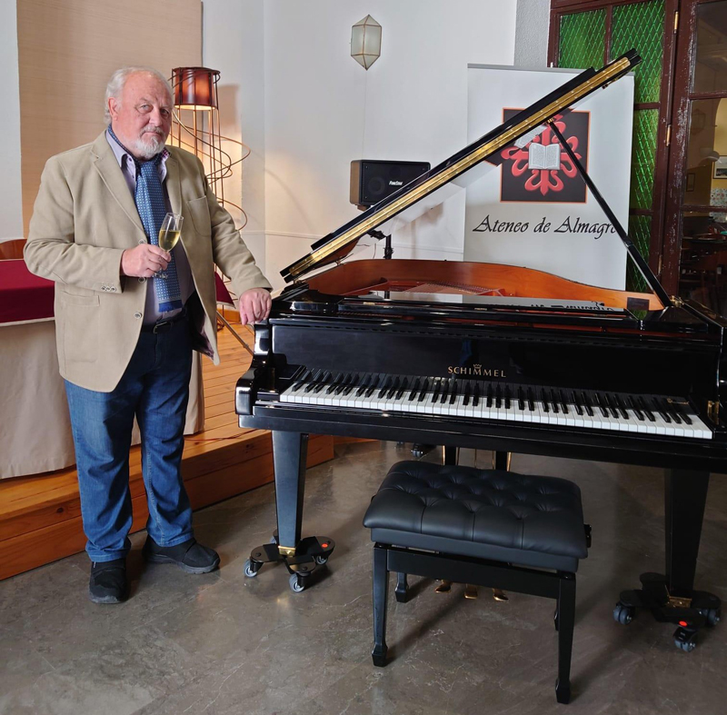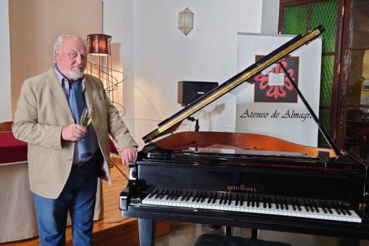 Por su parte, Ole Jantzen se refirió en primer lugar a su vinculación e implicación desde años atrás con el Ateneo de Almagro y, al respecto, rememoró la presencia en las innumerables actividades de la institución siempre con su mujer Quima García, a cuya memoria quiso dedicar el emotivo momento de reconocimiento. Del mismo modo, y en tanto que entusiasta melómano, el protagonista del acto institucional ha contribuido decididamente en todas las actividades realizadas desde la Sección de Música y Danza del Ateneo de Almagro culminando su decidido apoyo con la posibilidad de utilización del piano de media cola que se presentó en el acto impulsado por la institución cultural almagreña.