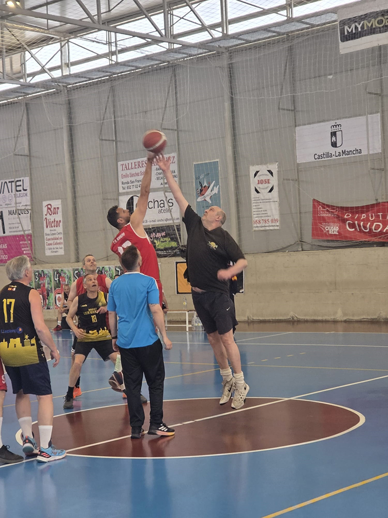 La celebración continuó con el partido de veteranos, en el que el equipo local se enfrentó a los veteranos de Ciudad Real en el pabellón Gemma Arenas. Un encuentro en el que el resultado fue lo de menos y donde lo verdaderamente importante fue el reencuentro sobre la pista. Cabe destacar que en pocas ocasiones se ha visto un banquillo tan numeroso en las filas almagreñas, con una gran presencia de antiguos componentes del club, reflejo del buen recuerdo que guardan de su paso por el club encajero.