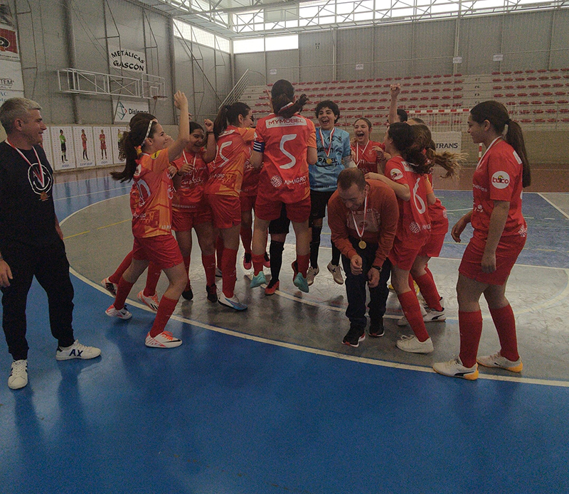 Y de fútbol sala femenino. Nuestras infantiles de la escuela municipal de Fútbol Sala, se han proclamado campeonas provinciales. Y para redondear el fin de semana, victoria del Club Baloncesto Almagro. Una gran victoria de nuestros séniors que se anotan el primer punto del playoff abte CEI Toledo.