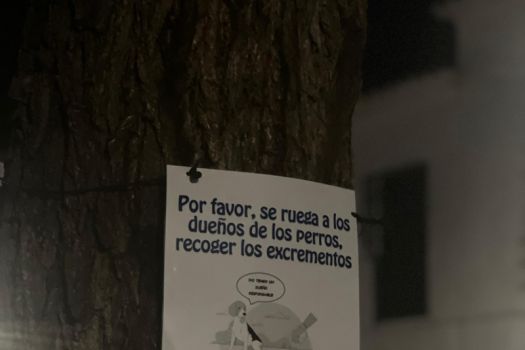 “Por favor, se ruega a los dueños de los perros recoger los excrementos. ¡Tu mascota es un vecino más! Él no puede hacerlo, ¡tú sí!”