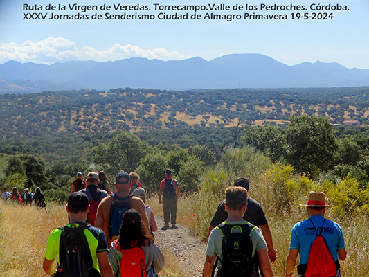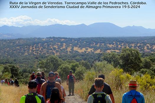 La segunda de las rutas y con las que han concluidos estas jornadas de senderismo de primavera ha sido por el Valle de los Pedroches cordobés. La ruta elegida en esta comarca cordobesa fue la de la Virgen de Veredas, en la localidad de Torrecampo. Un pueblo coqueto, bello, equilibrado y guardián de las costumbres constructivas de su entramado urbano. Los senderistas recorrieron el típico paisaje adehesado del Valle de los Pedroches hasta alcanzar el río Guadalmez, que hace de frontera entre Ciudad Real y Córdoba. Continuaron siguiendo el curso del río hasta alcanzar el santuario de la Virgen de Veredas, patrona de Torrecampo.
