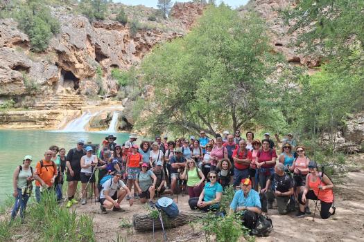 Las jornadas de Senderismo Ciudad de Almagro de esta primavera 2024 han finalizado este mes de mayo con dos rutas. La primera llevó a los senderistas almagreños a recorrer en un fin de semana las cercanías de la Reserva Natural de las Hoces del Cabriel. Caminaron por los Calderones en Minglanilla, un bosque de pinos donde perseguir los diferentes miradores sobre el embalse de Contreras, que divide las provincias de Cuenca y Valencia. En este recorrido, los senderistas recorrieron una de las rutas más sorprendentes en la localidad de Enguídanos: el Monumento Natural de las Chorreras del Cabriel, un espectáculo maravilloso que regala el río Cabriel a su paso formando sinuosas pozas, saltos de agua, cascadas imposibles. Requena, declarada Conjunto Histórico Artístico, fue la localidad elegida para hacer noche en este fin de semana de naturaleza pura.