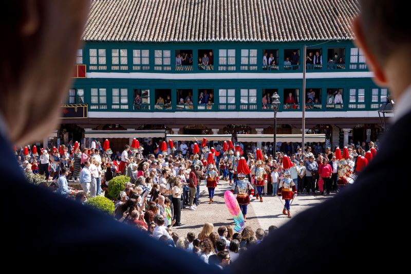 Emiliano García-Page ha asistido esta tarde al último caracol en una Plaza Mayor abarrotada, donde cerca de 200 armaos han llenado de color y tradición el centro de la ciudad.